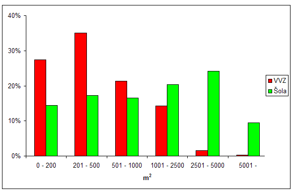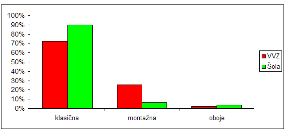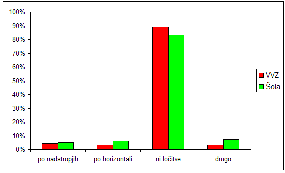 delitev, kar je pri 89 % vzgojno varstvenih zavodih in 83 % šolah.