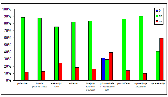 je tudi podatek, da se vaje evakuacije izvajajo le v 41 % pregledanih