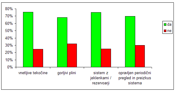 Iz grafa skladiščenje nevarnih snovi v skladu s predpisi lahko ugotovimo,
