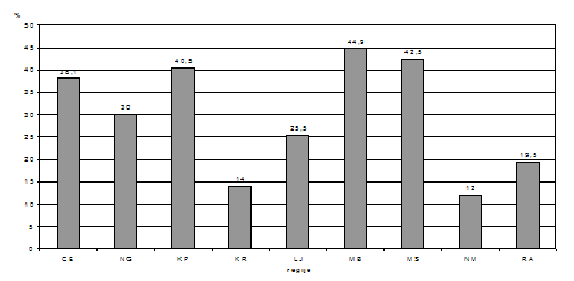 azbestu. Največ primerov je bilo lociranih v regijah Ljubljana,